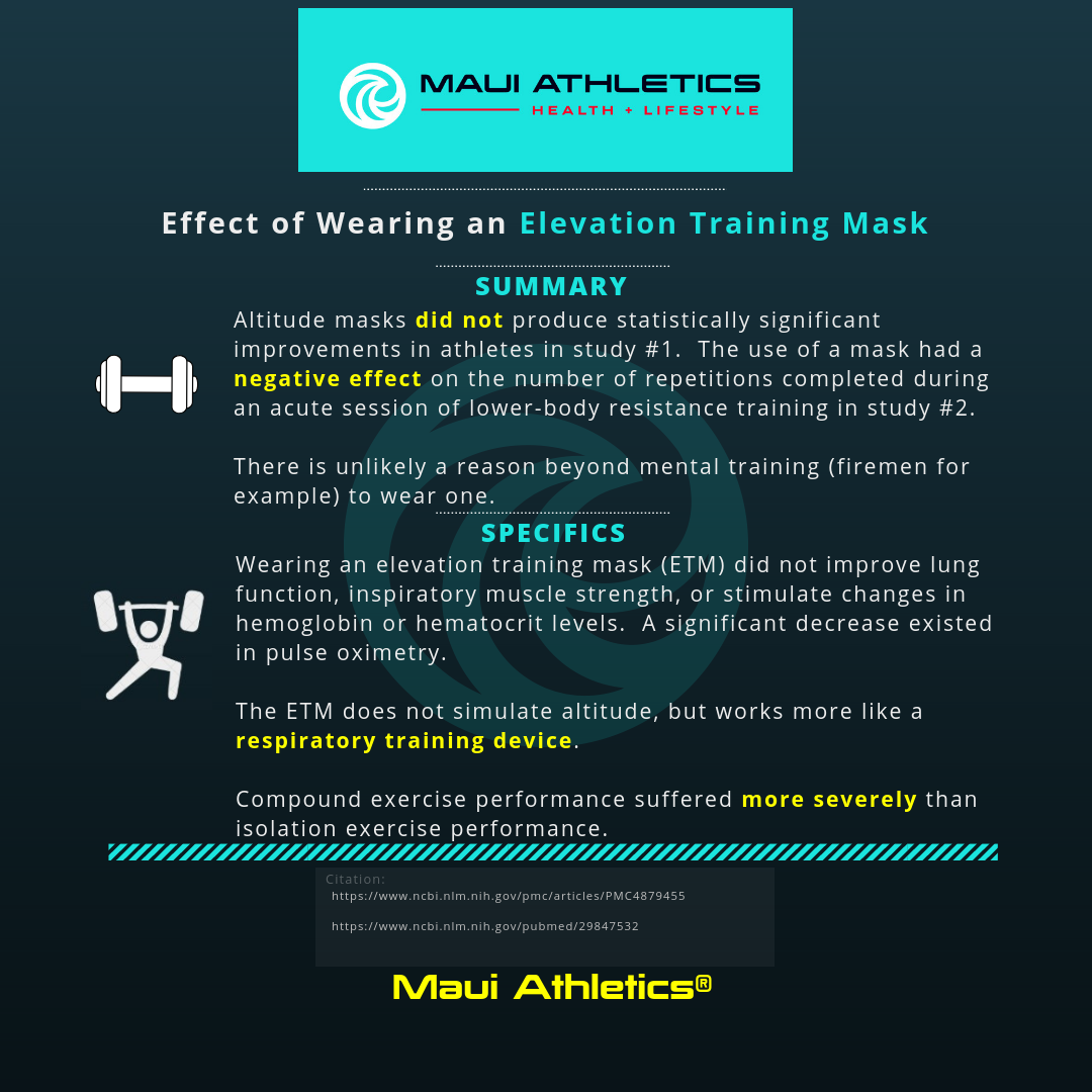 Altitude/elevation masks do not appear to produce statistically significant improvements in athletes, and may be detrimental to performance.