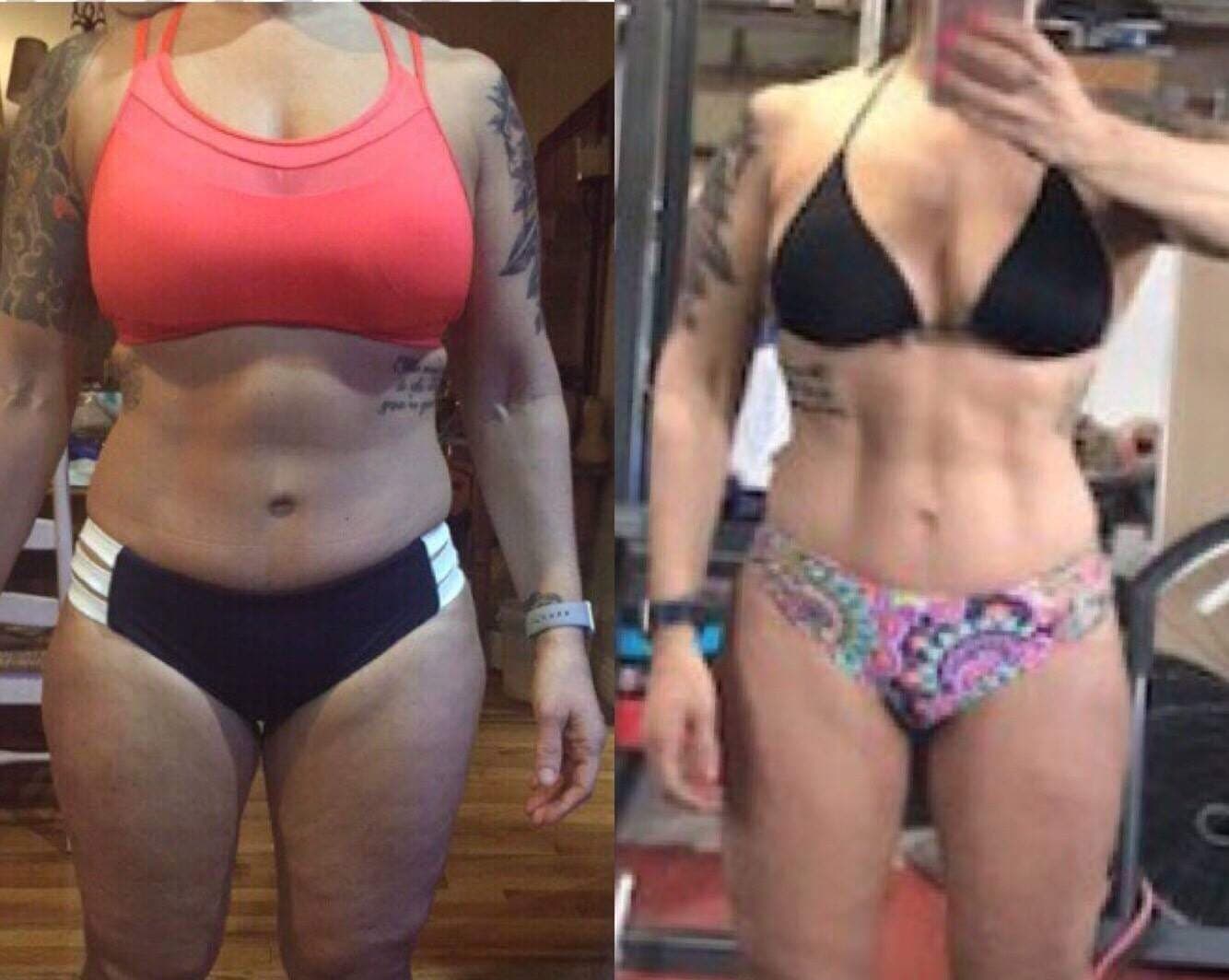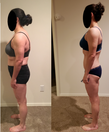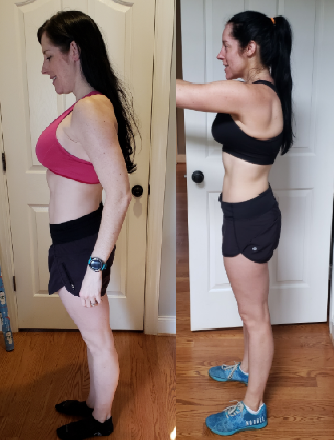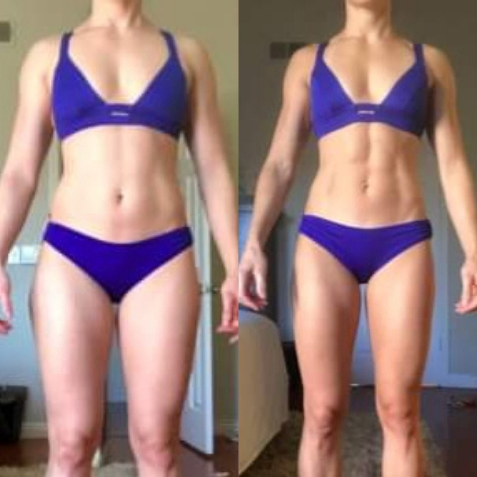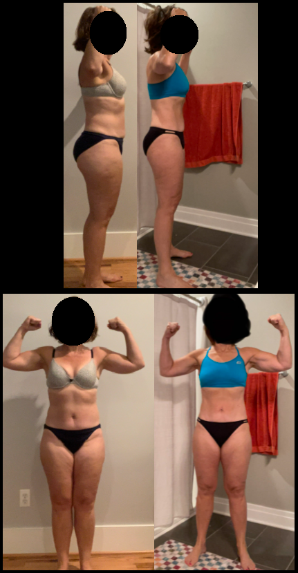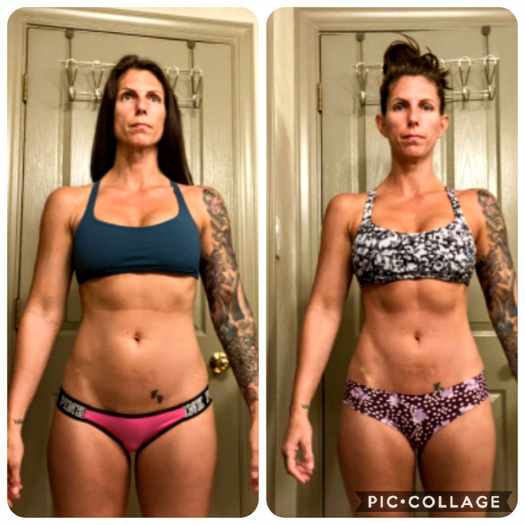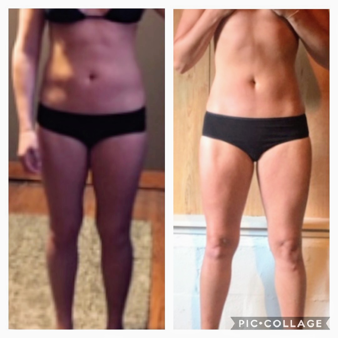 Jess signed up wanting to gain some lean muscle, strength, and get back into shape. She wanted to be stronger, not necessarily lose weight. During a 3 month “recomposition” phase. She went from 125lbs to 132lbs, but lost significant amounts of fat (as evidenced in her pictures) and gained a ton of strength!