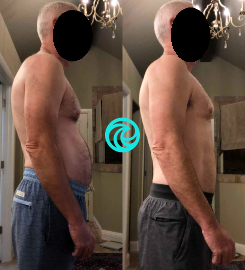 M.S. is down nearly 50lbs and 17 inches off his mid-section measurements in 6 months!